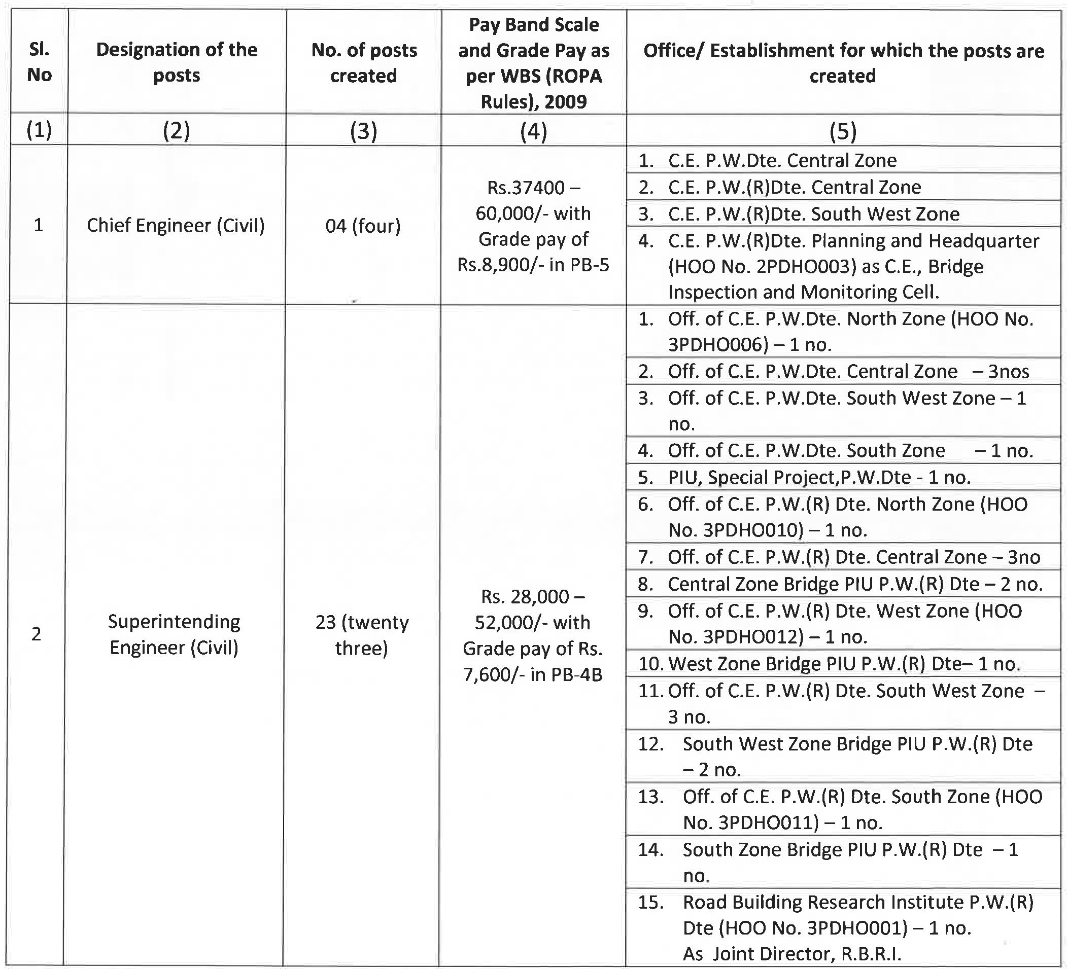 2. The above posts as mentioned at Sl. No. 1 to 10 above have been created by abolition of all vacant posts of Gang Mazdoor, Road Mazdoor and Road Mate under P.W. Dte. & P.W. (Roads) Dte., w.e.f. 1st November, 2019.