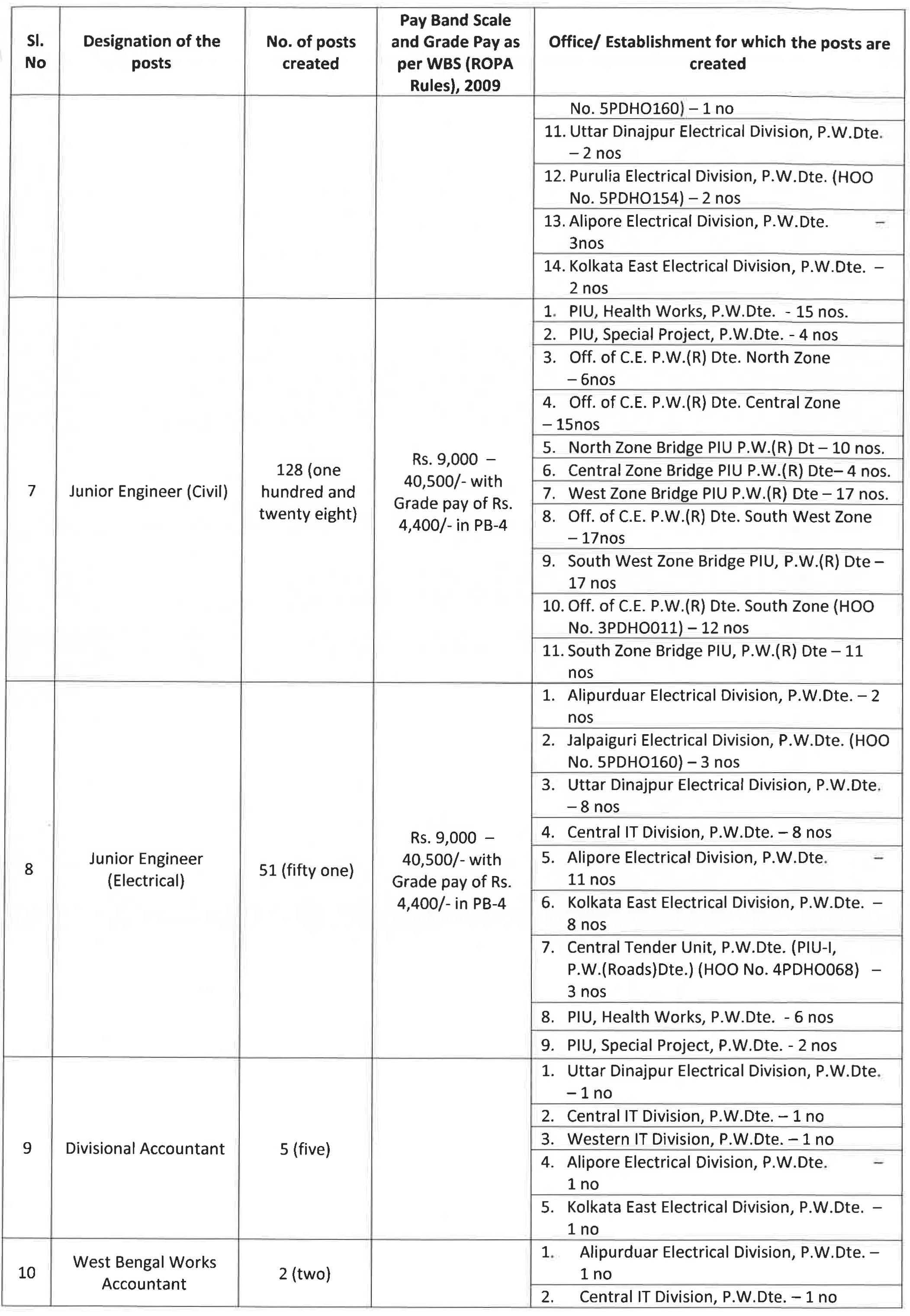 4. The expenditure on account of Pay and Allowances for the posts so created under P.W. Dte., will be debit able under the Head of Account, “2059-Public Works etc.” and the posts under P.W. (Roads) Dte. will be debitable under the Head of Account, “3054-Roads and Bridges etc.” under Demand No. 25 from the budget of the Public Works Department.