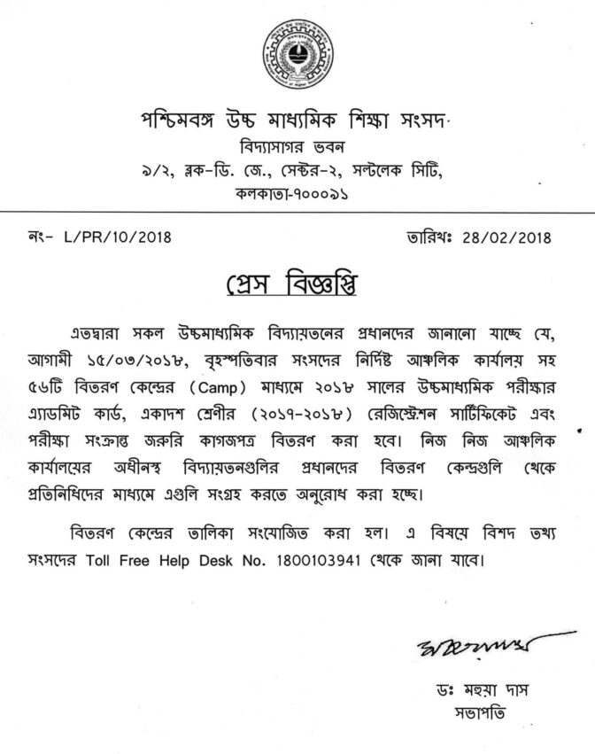 Distribution of Admit Card for Higher Secondary Exam, 2018