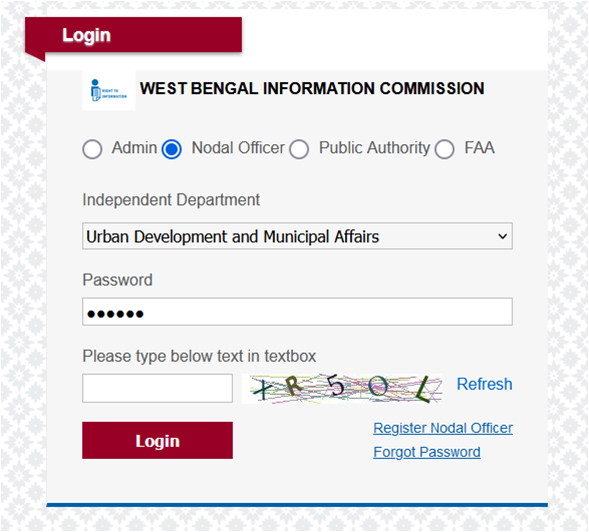 Here Click on Nodal Officer then select Department, fill password and enter showing text then click on login button.