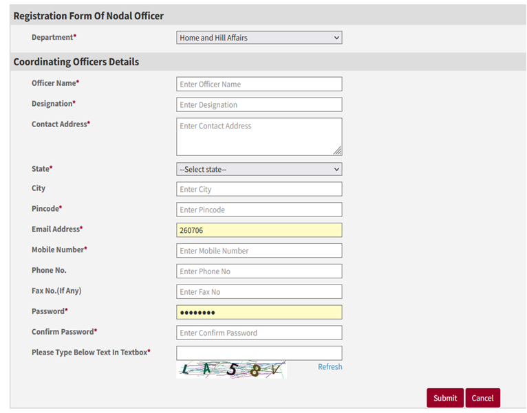 Nodal Officer Registration Page