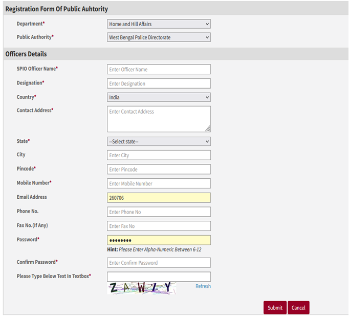 Public Authority Registration Page will open, fill all the required details (red star * mark is mandatory field).