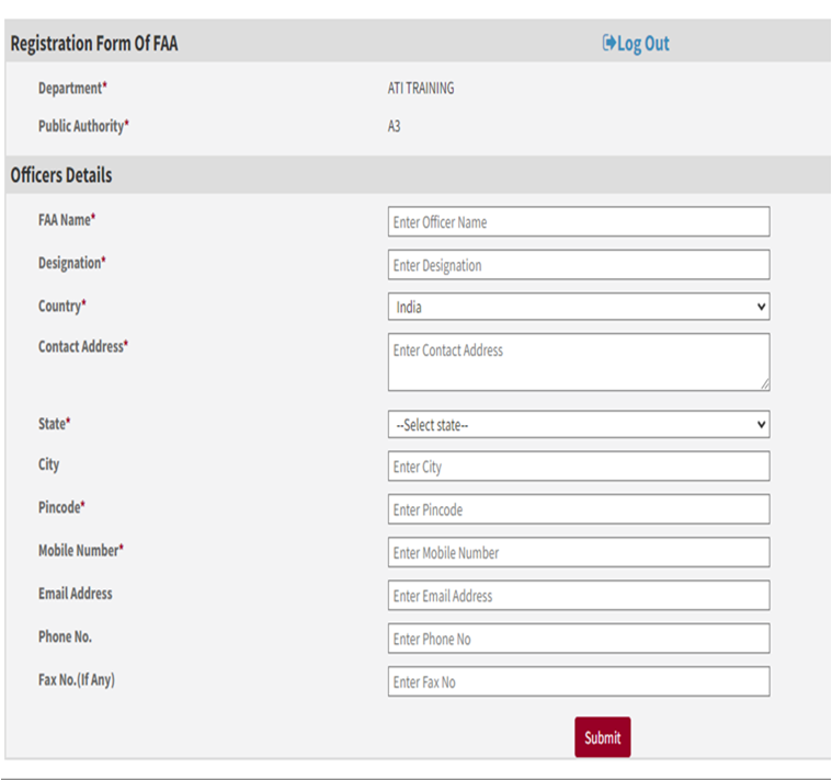 First Appellate Authority Registration Page will open, fill all the required details (red star * mark is mandatory field).