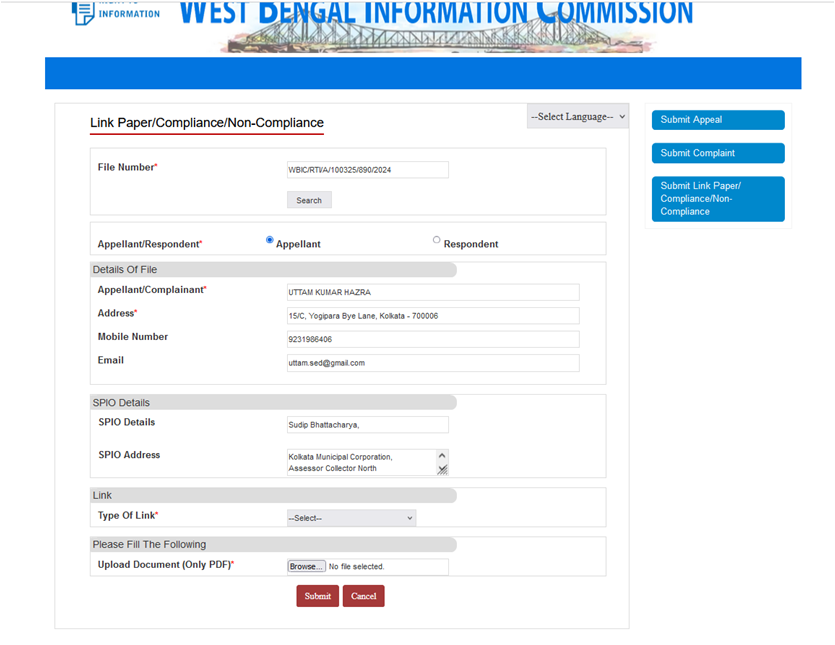 - Online filling of 2nd Appeals/Complaints (by the citizens)